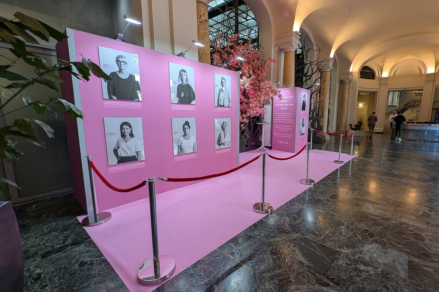 Des photos et témoignages de femmes, collaboratrices du groupe, qui « incarnent Octobre Rose » et racontent « avec beaucoup de pudeur et de sensibilité » leur expérience face à la maladie. Au centre de l’installation, un grand cerisier rose, symbole d’espoir, sur lequel chacune et chacun peut accrocher un message, un vœu, un soutien.