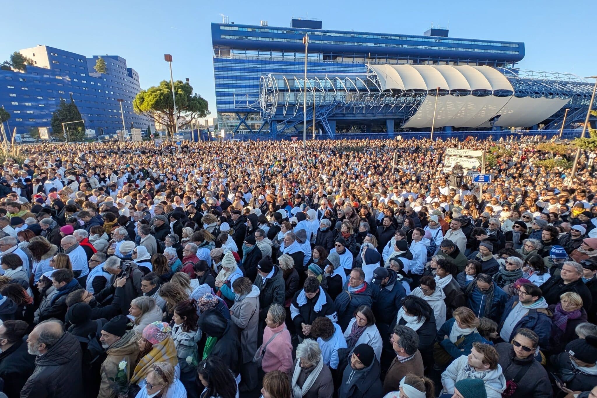 Une marée humaine. Entre 6 000 et 10 000 personnes. Et beaucoup de blanc pour un rassemblement historique. La population marseillaise a répondu présent, ce samedi 22 novembre 2025, autour du rond-point Claudie d’Arcy, au pied de l’hôtel du département (4e), où a été assassiné Mehdi Kessaci une semaine plus tôt.
