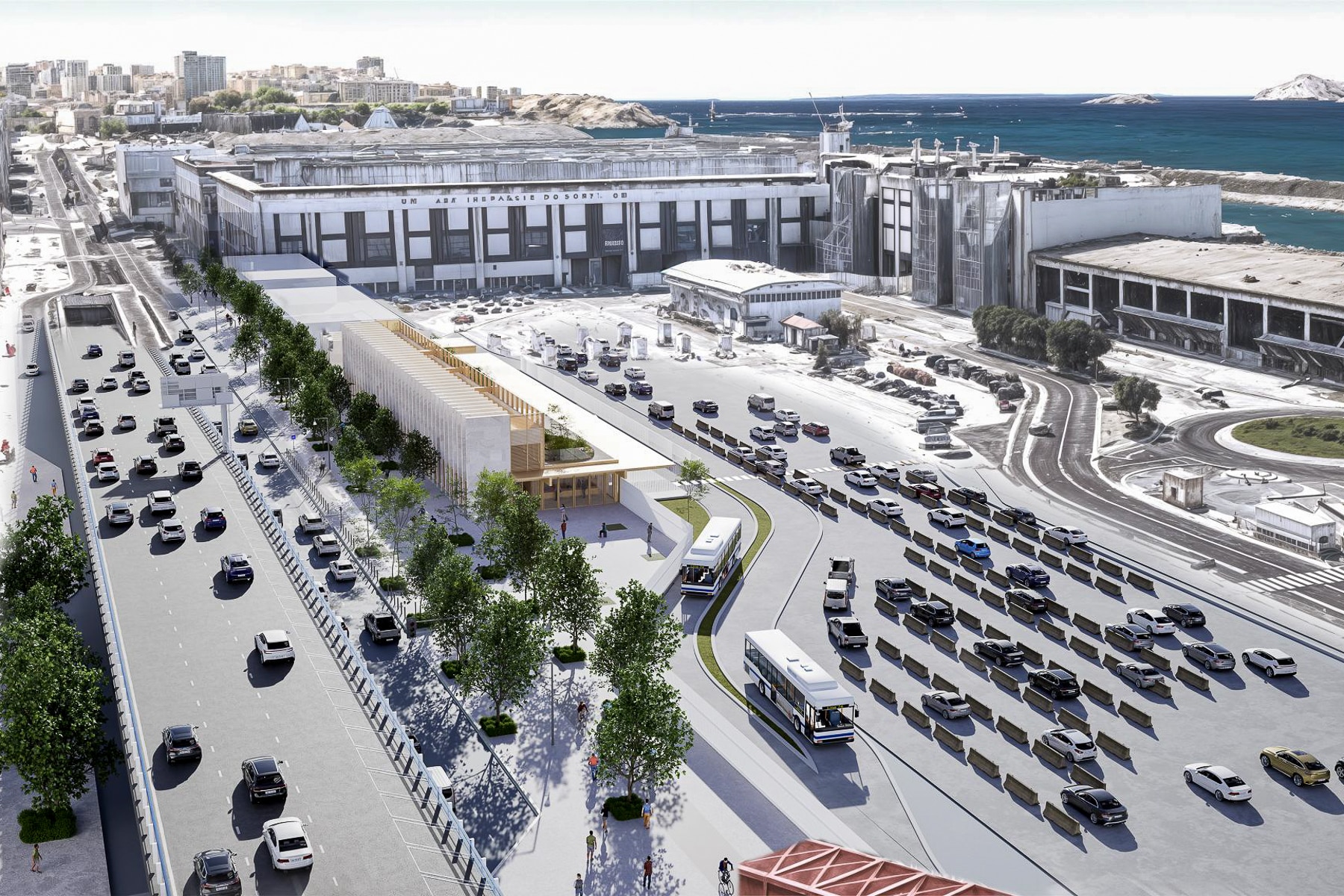 Comme l’indiquait le dossier de consultation, un parvis végétalisé doit également être construit devant la gare « en dialogue avec la clôture » qui ceinture les bassins Est de Marseille.