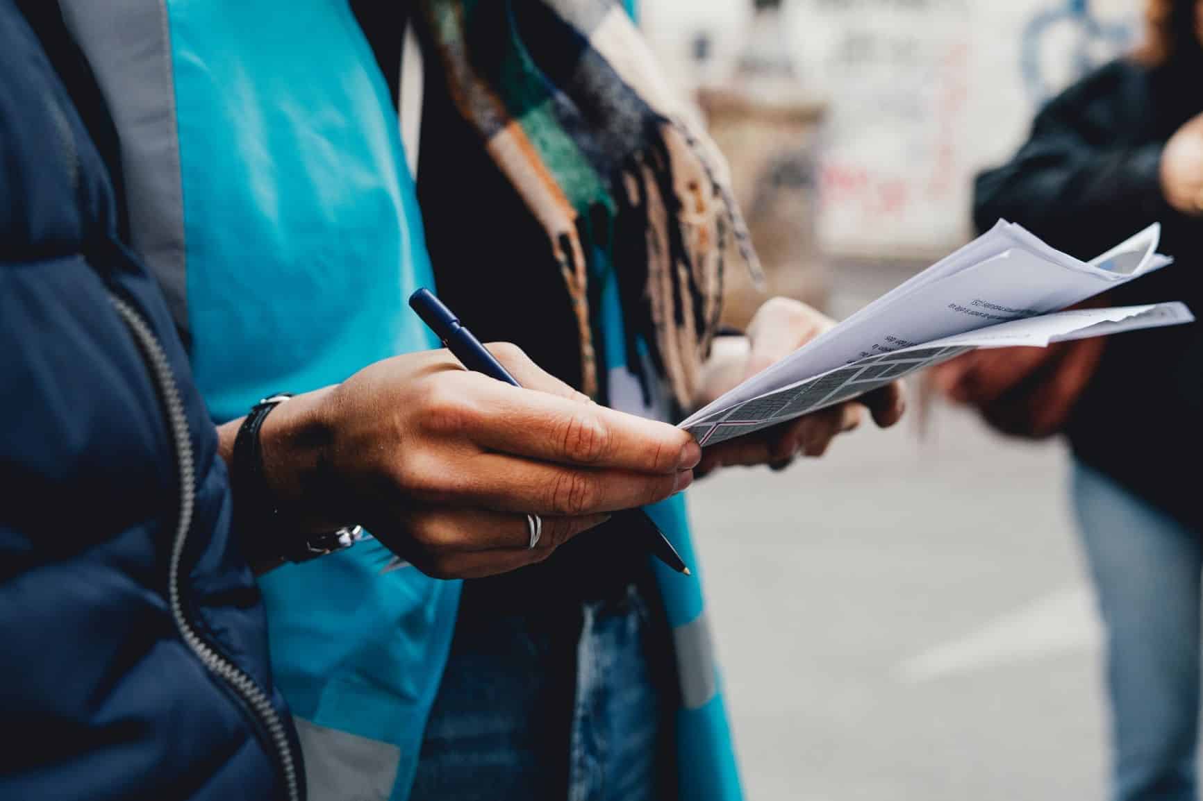 Chaque bénévole engagé pour la soirée devra échanger avec les personnes sans-abri sur la base d’un questionnaire fourni par les organisateurs, de manière attentive et bienveillante, et ce uniquement si elles acceptent de participer à l’enquête. Le soir de la Nuit de la Solidarité, des équipes de 3 à 6 personnes sont formées et comprennent une personne expérimentée. Chaque équipe est affectée à un sous-secteur numéroté.