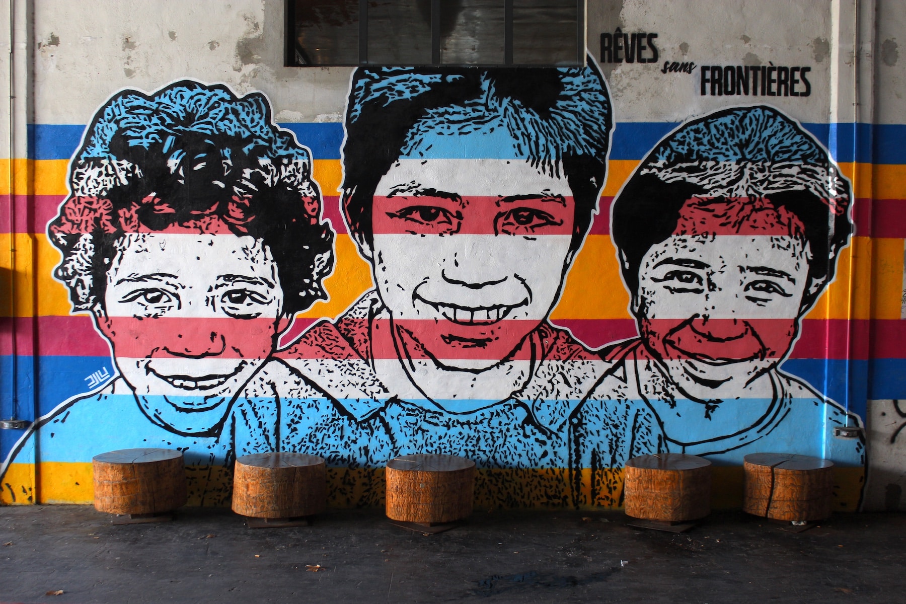 Nommée « Rêves sans frontières », elle met en lumière les visages d’enfants de Bogota que l’artiste a rencontrés et photographiés. « À travers leurs regards, c’est toute une jeunesse urbaine, populaire, que DJLU choisit de représenter », souligne l’association de Saint-Mauront.