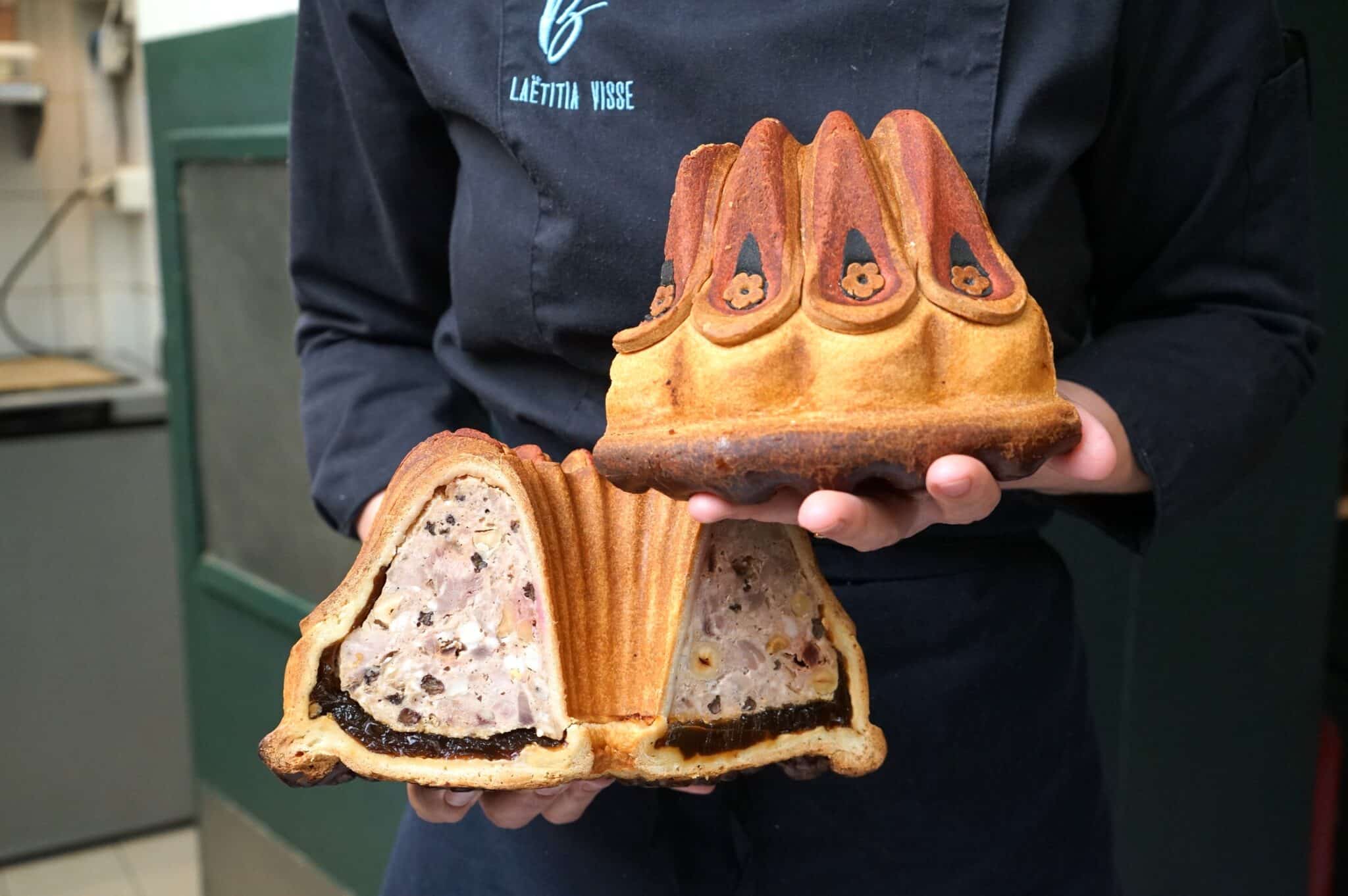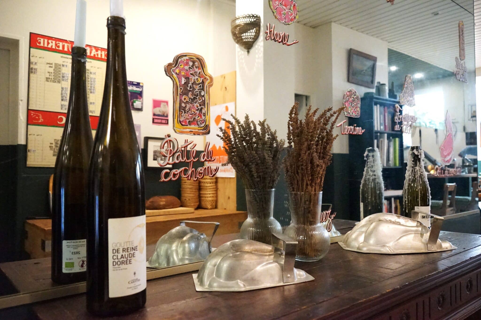 Ici, tout est fait maison : le boudin, les andouillettes, le pâté en croûte. La cheffe a même écrit un livre sur cette charcuterie pâtissière, dont elle partage la minutieuse préparation sur sa page Instagram. Son ouvrage trône d’ailleurs à côté du buffet où les moules de poulets rôtis côtoient de bonnes bouteilles de vin rouge.