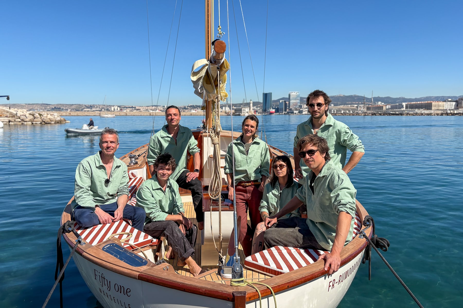 Labellisé Entreprise du Patrimoine Vivant, l’atelier est spécialisé dans la construction et la rénovation de barquettes marseillaises traditionnelles, et s’est inspiré de ces dernières pour donner vie à ce « fifty » : une coque légère, pointue à l’avant comme à l’arrière, une large assise au maître-bau (3,5 mètres). Le tout en mélangeant techniques de fabrication anciennes et modernes.