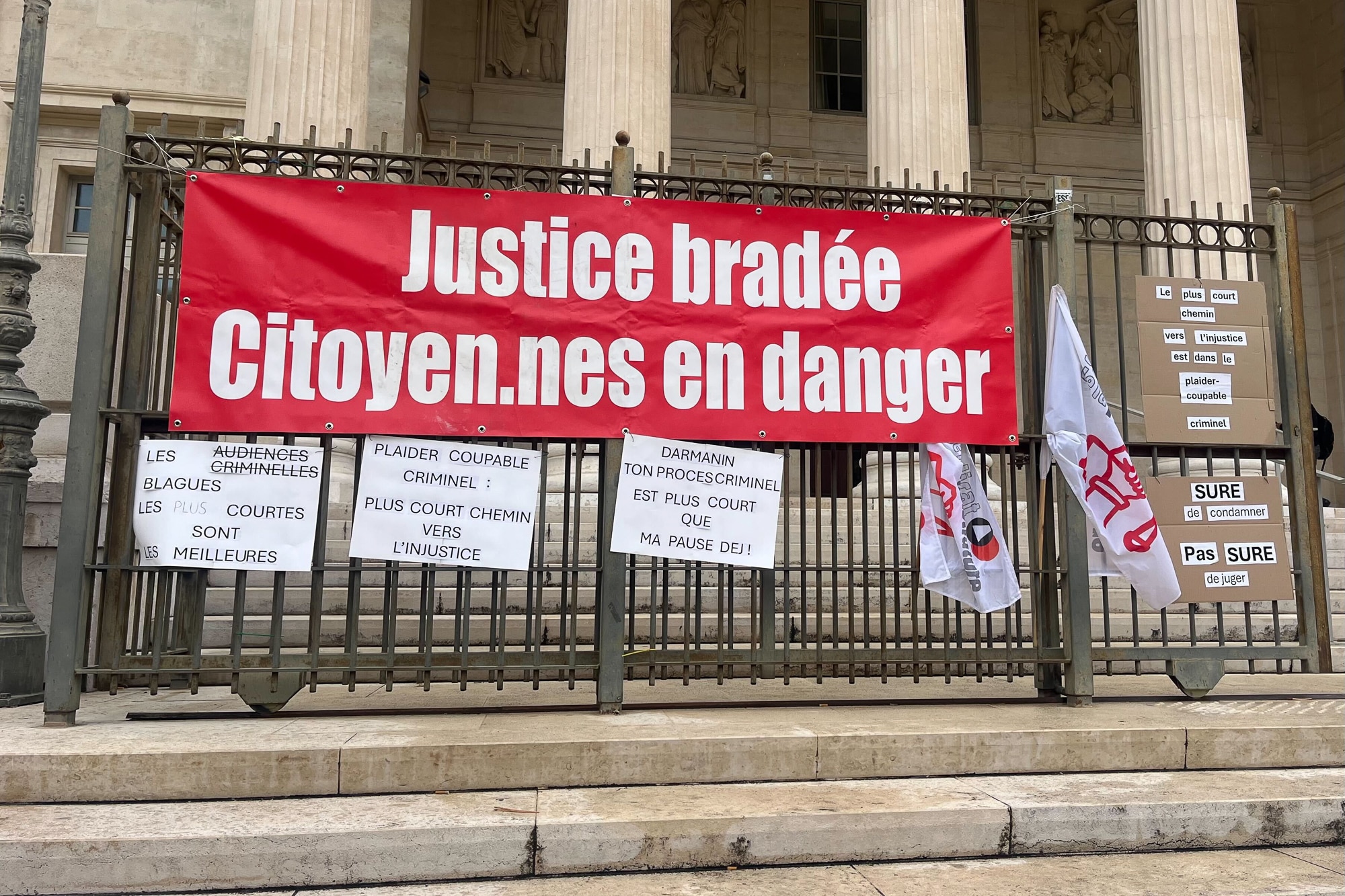 « Darmanin, ton procès criminel est plus long que ma pause déj », « Qu’importe le procès pourvu qu’ils aient la peine », « On juge si vite qu’on se demande si on juge encore ». Derrière ces slogans déclamés au mégaphone sur le parvis du palais Monthyon, une profonde inquiétude : celle de voir s’imposer une justice plus rapide, mais au détriment des garanties fondamentales d’un procès équitable.