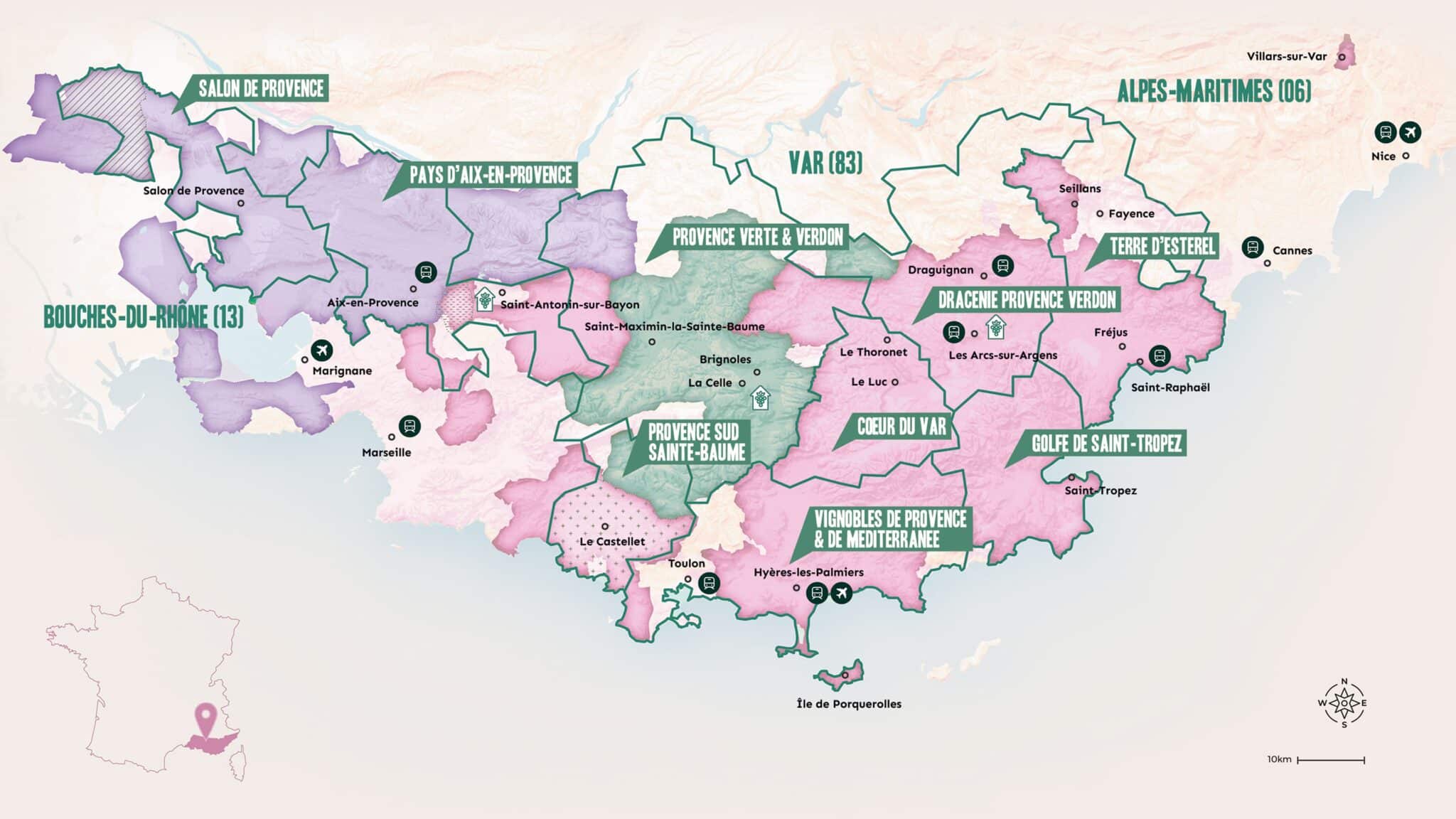 Neuf territoires des vignobles de Provence et de Bandol y participent : Terre d’Estérel, Dracénie Provence Verdon, Cœur du Var, Vignobles de Provence & de Méditerranée, Provence-Sud Sainte-Baume, Provence Verte et Verdon, Pays d’Aix-en-Provence, Salon de Provence, et le tout nouveau territoire labellisé, le Golfe de Saint-Tropez.