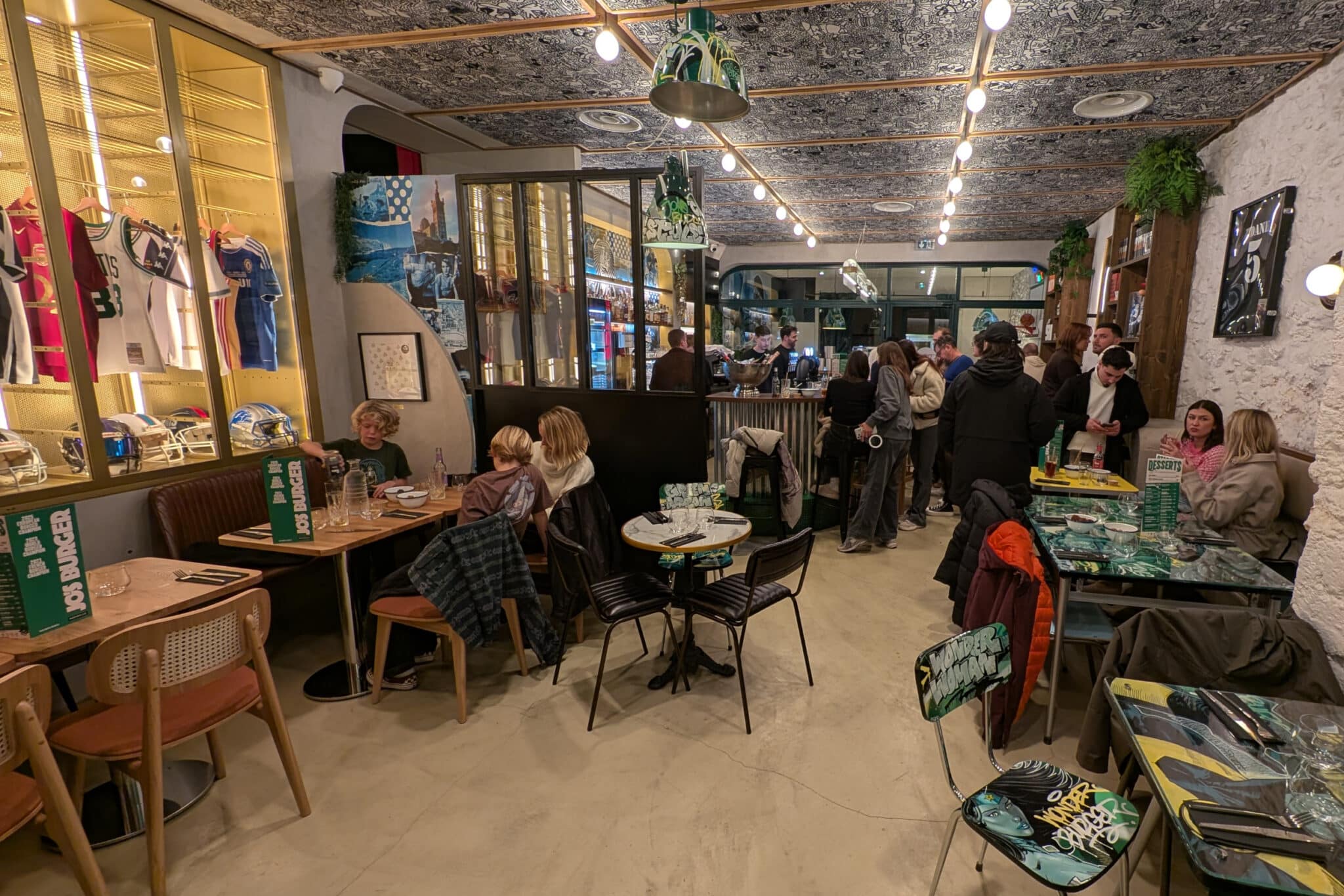 Pour Joannes, l’idée était de « créer un lieu chaleureux, de sept à soixante-dix-sept ans ». Des tables dressées, plusieurs espaces, une décoration travaillée. Aux murs, des touches subtiles rendent hommage à l’identité marseillaise et à la pop culture, rappelant l’alliance entre la ville, le sport et la gourmandise.