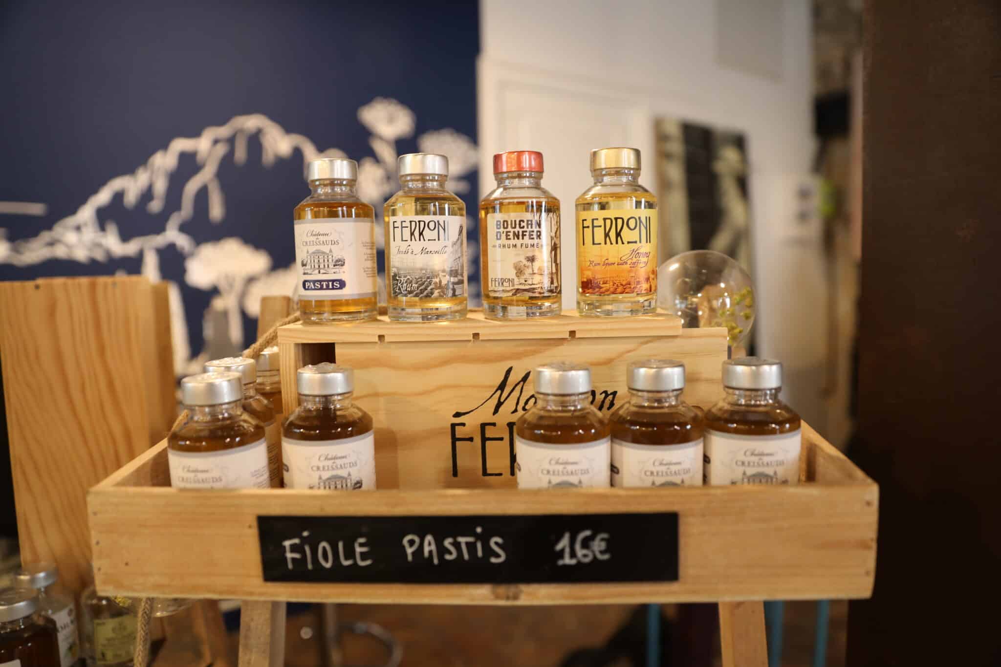 Sa devanture bleue provençale annonce d’emblée la couleur d’un espace pensé comme « convivial, vivant et accueillant », insiste Maelys, accoudée derrière le bar. La nouvelle recrue gérera cette boutique de la Maison Ferroni qui complète le premier lieu dédié au Rhum de la rue neuve Sainte-Catherine, et la maison mère à Aubagne, le Château des Creissauds.