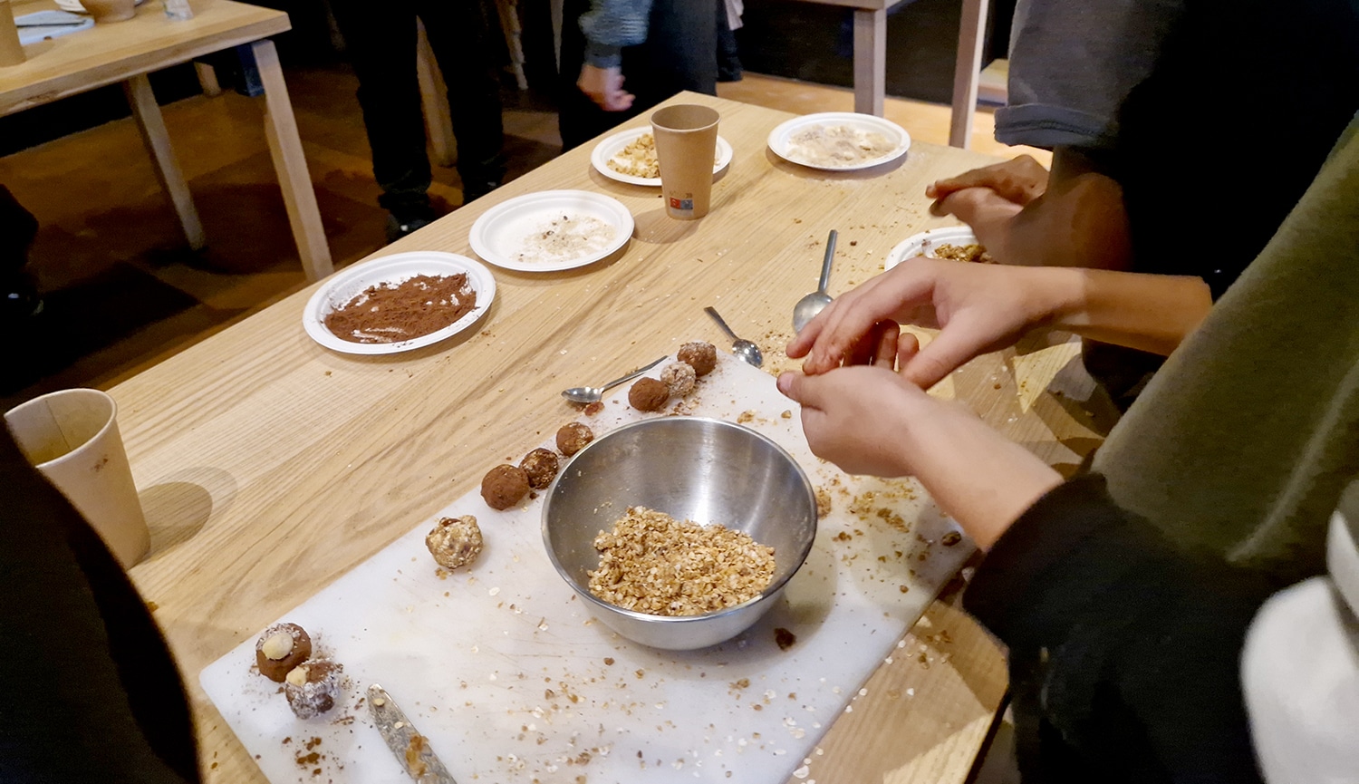 Sous l’œil bienveillant des accompagnatrices et de leur enseignante, les élèves façonnent ensuite des energy balls, petites bouchées énergétiques faciles à refaire à la maison. « J’ai l’habitude de faire des gâteaux avec ma grand-mère, mais pas ça !, sourit Wissel, 10 ans. On va pouvoir refaire la recette à la maison ».