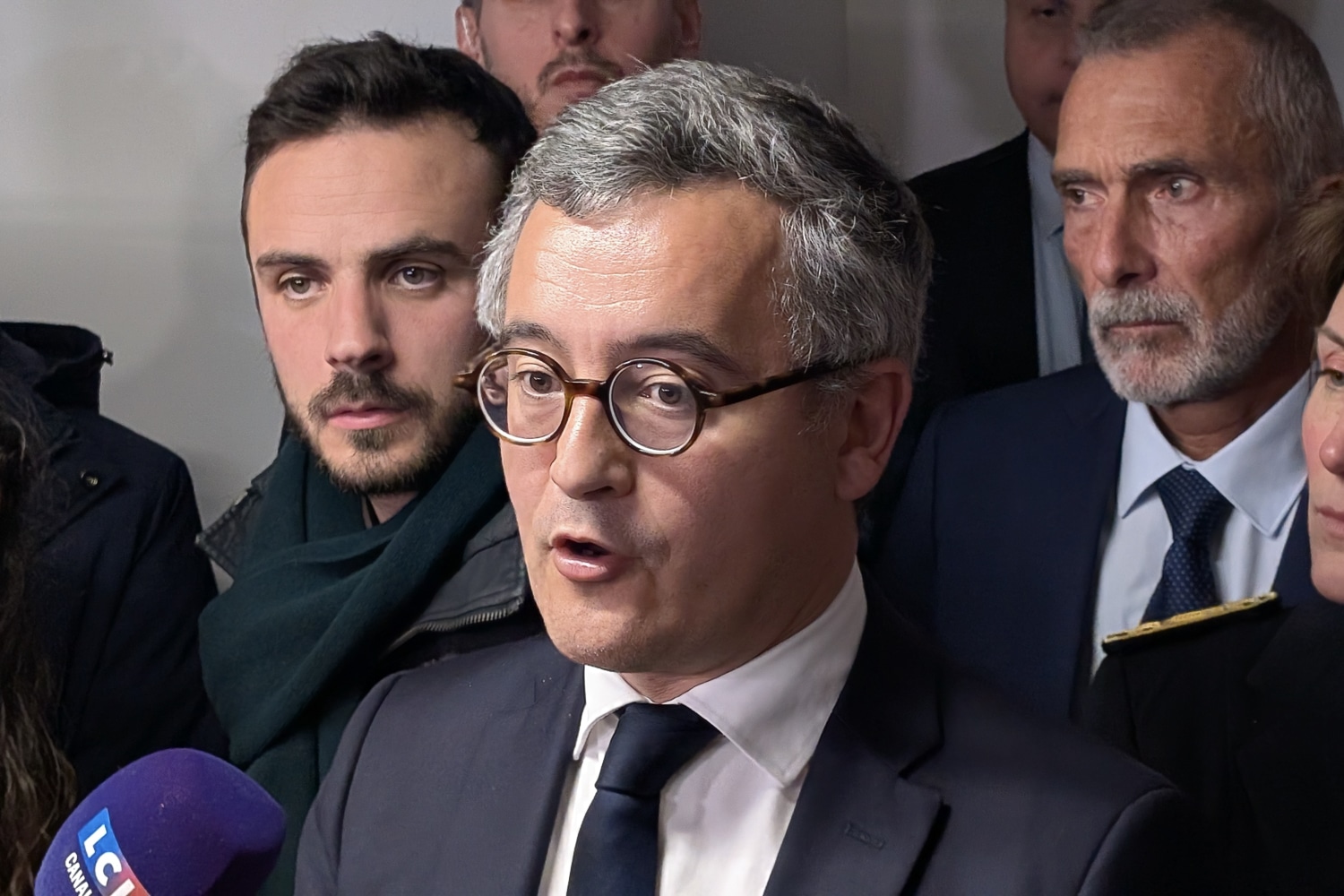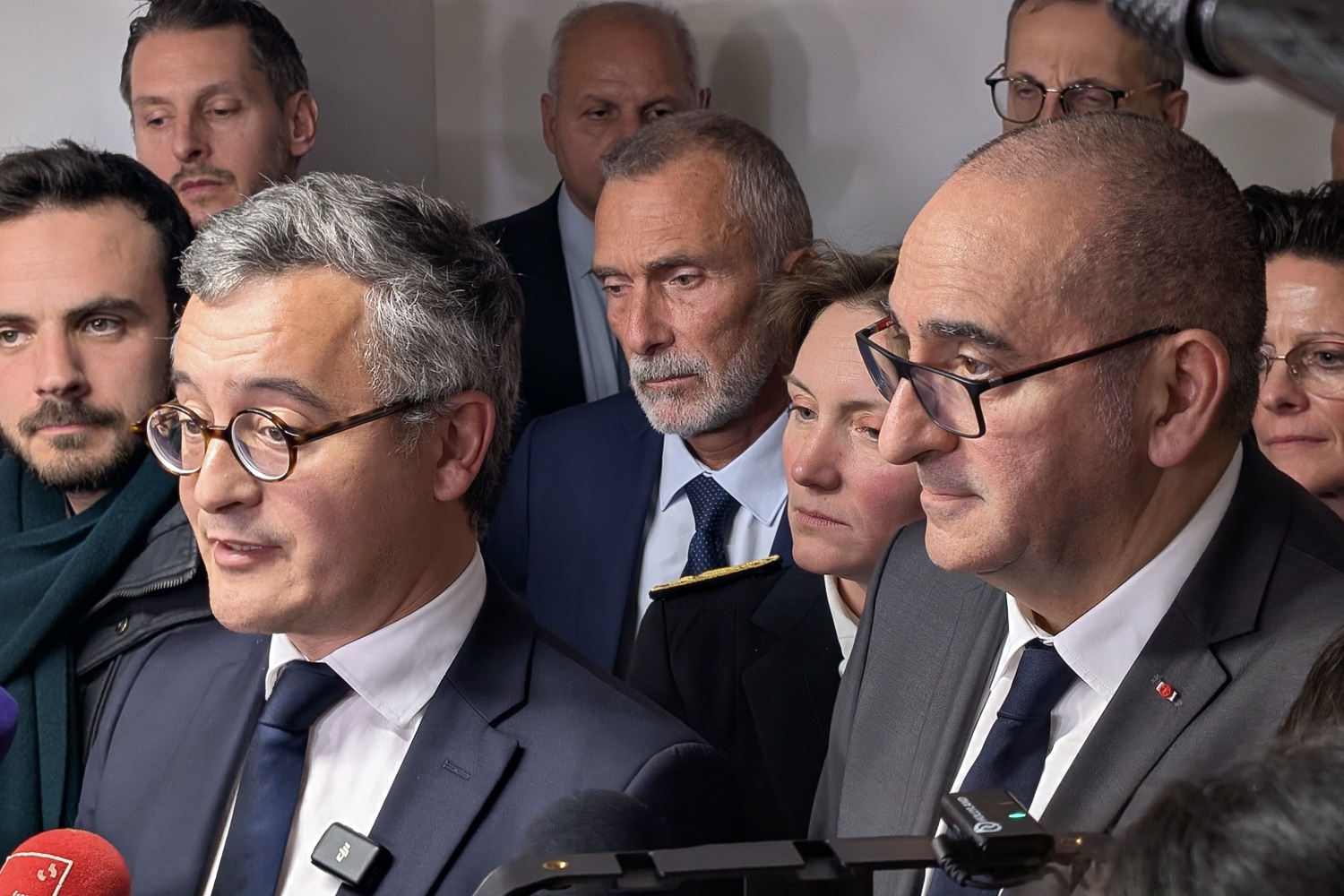 Les ministres Laurent Nuñez et Gérald Darmanin ont défendu à Marseille le bilan de l’État dans la lutte contre le narcotrafic, après l’assassinat du jeune Mehdi Kessaci.